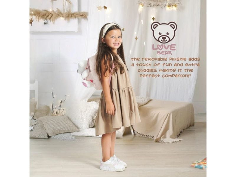 Otroški nahrbtnik Perletti Toys „Polarni medved“❄️? prinaša odmerek nežnosti in zabave v vrtec ali na izlete. Zgornji del nahrbtnika krasi nežen motiv in priložen medvedek s sladkim rožnatim srčkom ?, ki ga je mogoče preprosto odstraniti in uporabiti kot samostojno igračo ali spremljevalca za objemanje. Narejen je iz vodoodpornega, nestrupenega materiala, ki je tudi zelo mehak in lahek, zato ga bodo otroci brez težav nosili ?"️☀️. Oblazinjene in nastavljive naramnice se prilagodijo vsaki obliki telesa, enakomerno porazdelijo težo in zagotavljajo udobje tudi pri celodnevnem nošenju ?