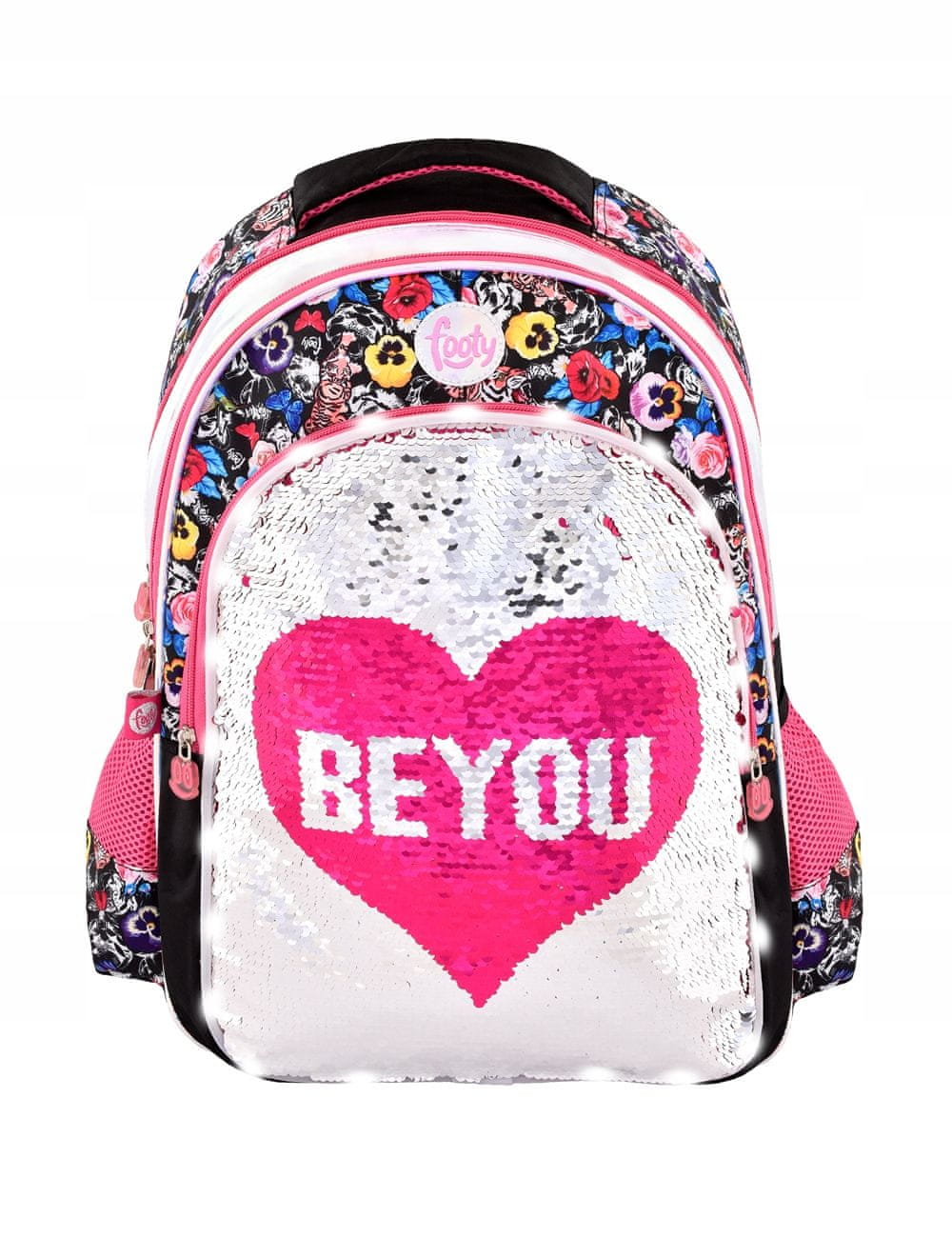 Popoln nahrbtnik za vašega otroka? Imamo ravno pravšnjega: velik, udoben, čudovito okrašen z dvostranskimi bleščicami in LED lučkami! To so sanje vsakega dekleta! LED lučke S tremi načini osvetlitve bodo vašemu otroku zagotovile obilo zabave in veselja, vi pa se boste počutili, kot da je vaš otrok na poti v šolo viden.