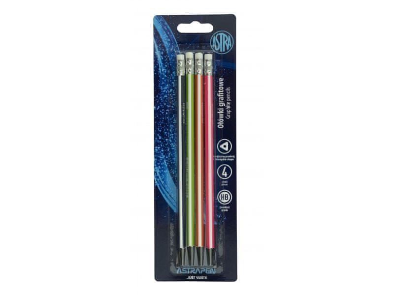 Astra ASTRA, 4 kosi Črni leseni svinčnik z radirko, trdota HB, blister, 206120017