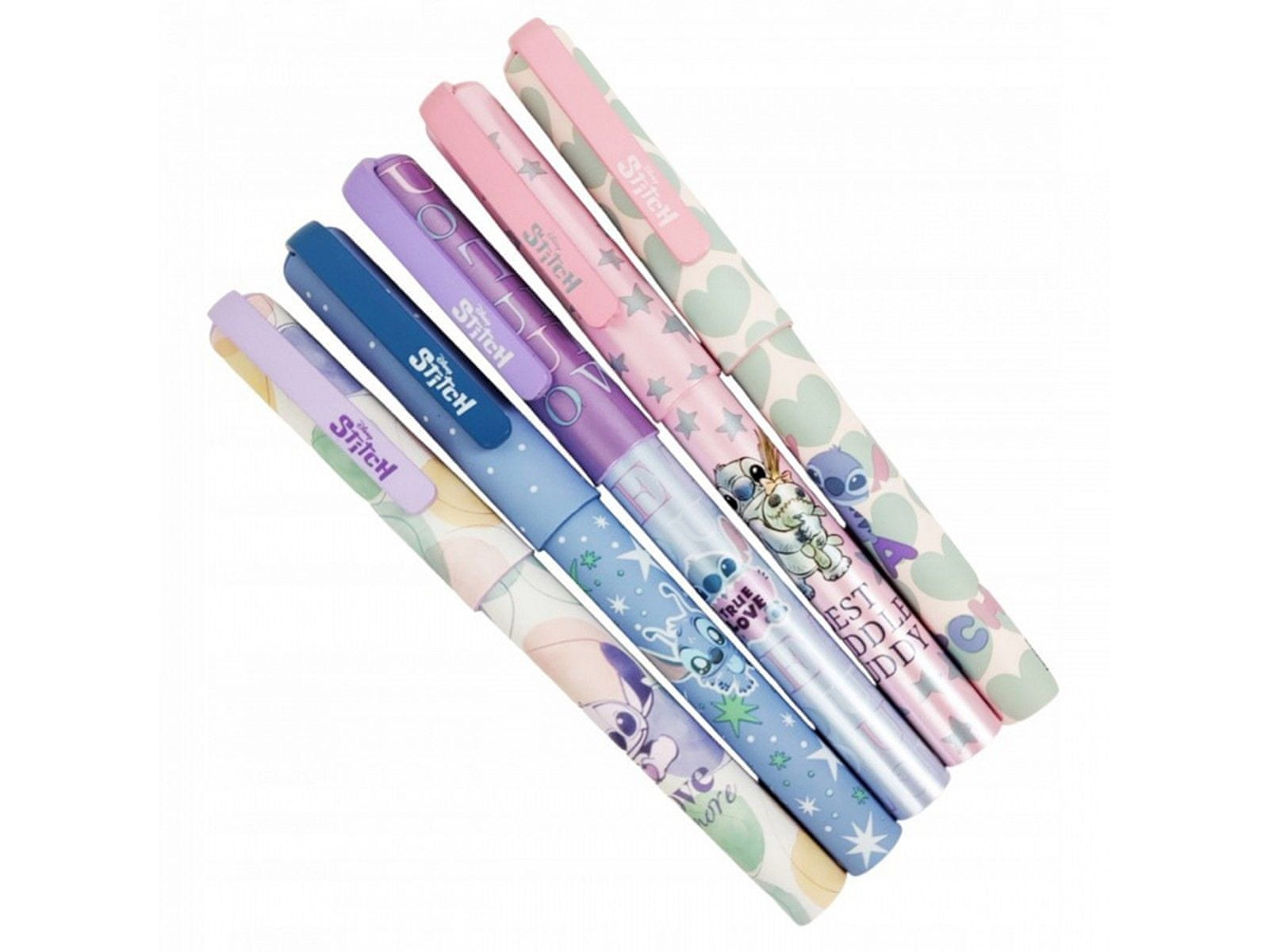 Disney gel pisala Stitch so barviti in elegantni pripomočki za pisanje, ki bodo navdušili vse ljubitelje prikupnega animiranega lika Lilo in Stitch.Vsako pisalo je napolnjeno z modrim gelskim črnilom, ki gladko in rahlo drsi za udobno pisanje.Pisani motivi, ki jih je navdihnil šiv, dodajo zabavno in Celoten opis