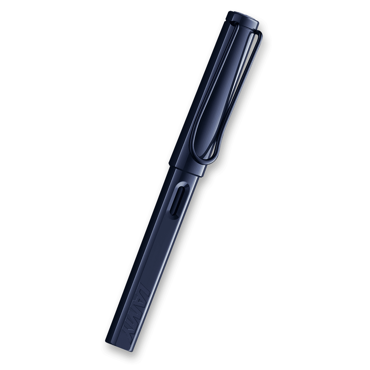 Nalivno pero Lamy Safari Dark Dusk ima ohišje iz utrjene plastike ABS, pokrovček z zaskočnikom in kovinsko sponko z vzmetjo. Območje ročaja je ergonomsko oblikovano. Celoten opis