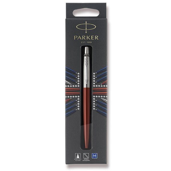 Pesalo s kroglico (pisalo):, * mehanizem za stiskanje, * polnilo za pisala s kroglico, dobavljeno z modrim ali črnim polnilom – odvisno od razpoložljivosti na zalogi., Oblika blistra se lahko razlikuje – odvisno od razpoložljivosti na zalogi, NASVET: takoj kupite nadomestno polnilo za kroglično pero Parker, Parker Jotter je oblikovalska klasika in znana modelna linija, ki je še posebej cenjena zaradi svoje kakovosti, zanesljivosti in razmerja med ceno in kakovostjo. Gre za brezčasen model, ki je zaradi široke palete zaključkov in praktične, preproste oblike tudi eden najbolj priljubljenih