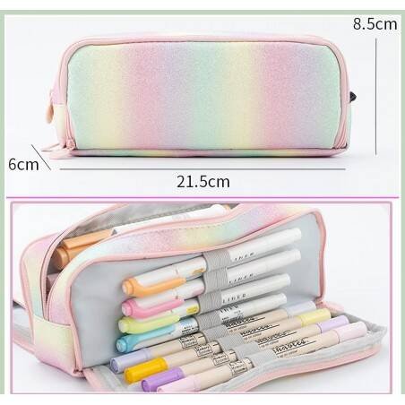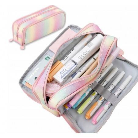 Ponujamo vam večnamensko peresnico s tremi predelki znamke ECARLA, ki združuje praktičnost z edinstvenim mavričnim dizajnom. Ta izdelek, ustvarjen z mislijo na potrebe študentov in profesionalcev, zagotavlja odlično organizacijo in estetiko.