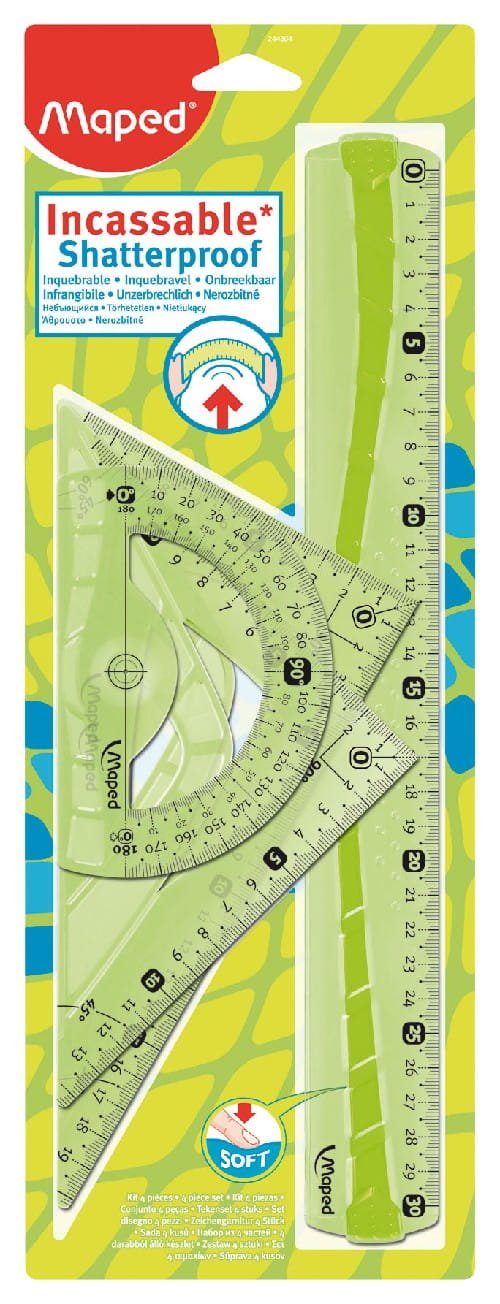 Geometrijski komplet FLEX MAXI je izdelan iz posebnega material, ki zagotavlja 100 % odpornost proti lomljenju