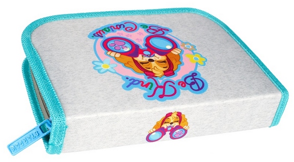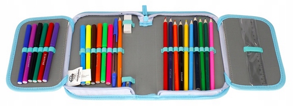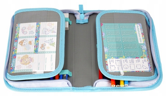 Popolnoma opremljen peresnik z 2 krilcema in elastičnima držaloma za šolske potrebščine, zapenjan z močno zadrgo.
