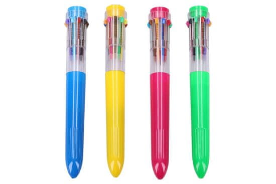 Večbarvno pisalo vsebuje 10 barv. Barvne različice pisala – rumena, modra, roza, zelena
