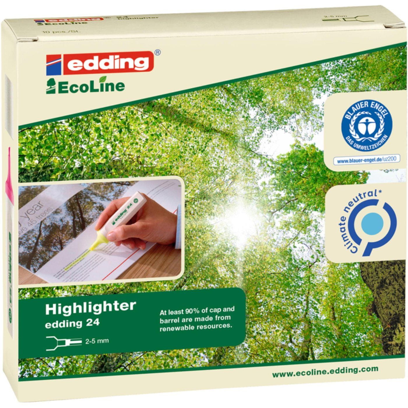 • Ekološki vidiki označevalnika edding 24 so bili nagrajeni z ekološkim certifikatom Modri angel