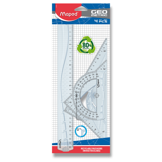 4-delni set za risanje Maped Geometric Maxi z visokokakovostnimi oznakami. Lestvice so natisnjene z UV-črnilom in so izjemno trpežne: