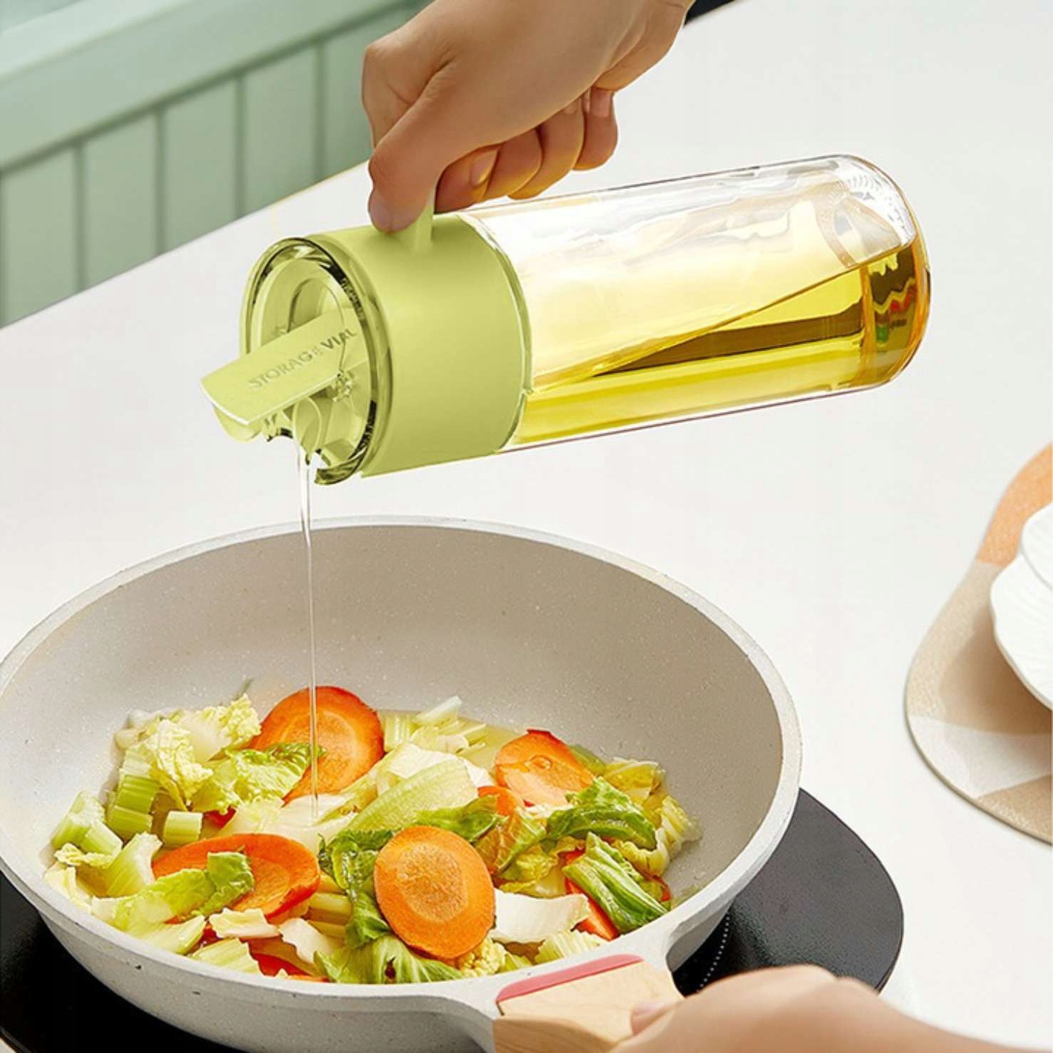 ❤️ Nadzor količine maščobe – omogoča natančno doziranje olivnega olja ali drugih tekočih začimb.
