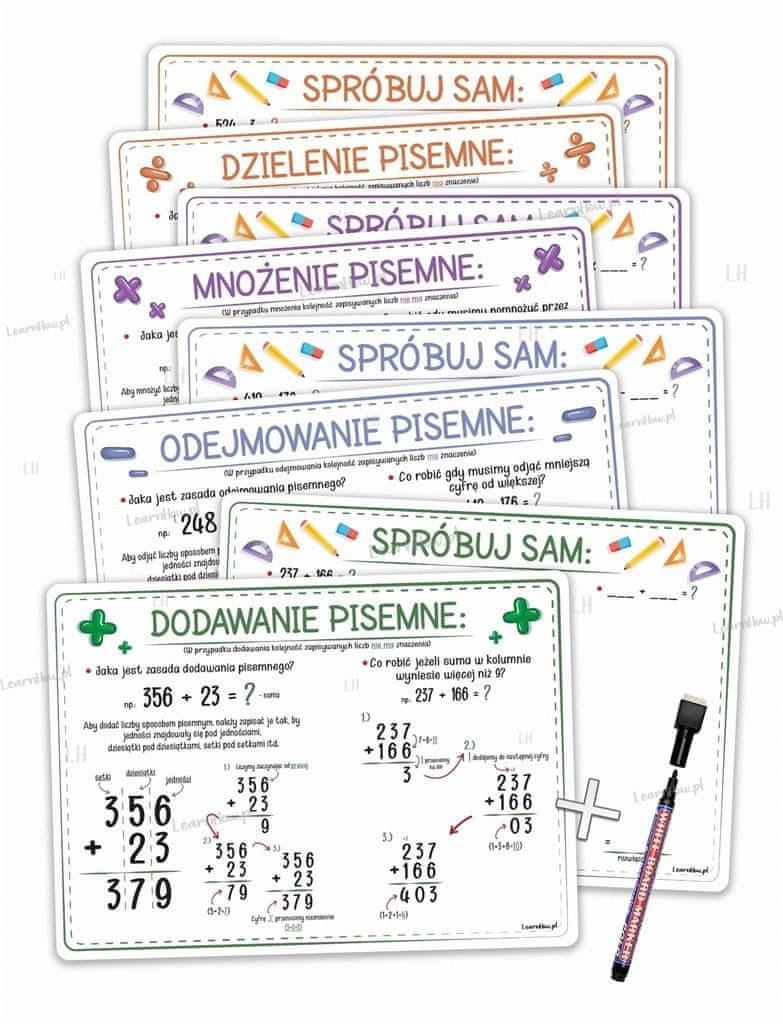 Ta komplet bo vašemu otroku pomagal pri učenju pisnega seštevanja, odštevanja, množenja in deljenja.