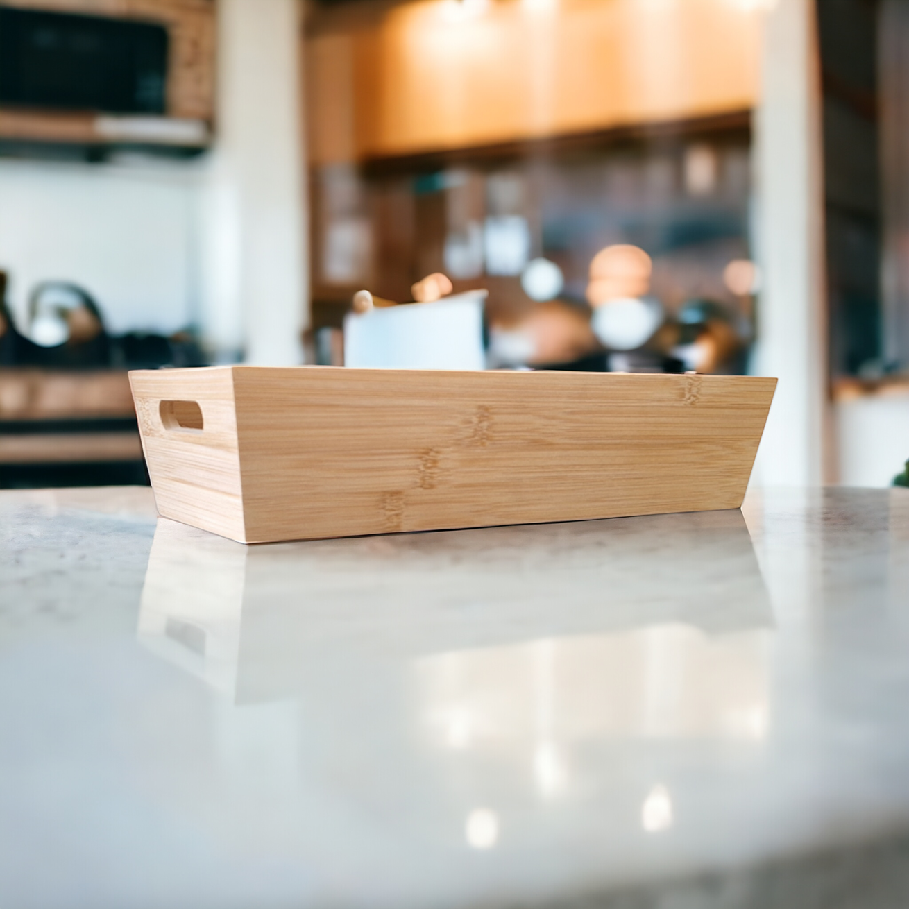 shumee PRAVOKOTNA ŠKATLA ZA ORGANIZATOR IZ BAMBUSOVEGA PLADNJA, LESENA ŠKATLA ZA ORGANIZATOR 33x14x7,5 cm