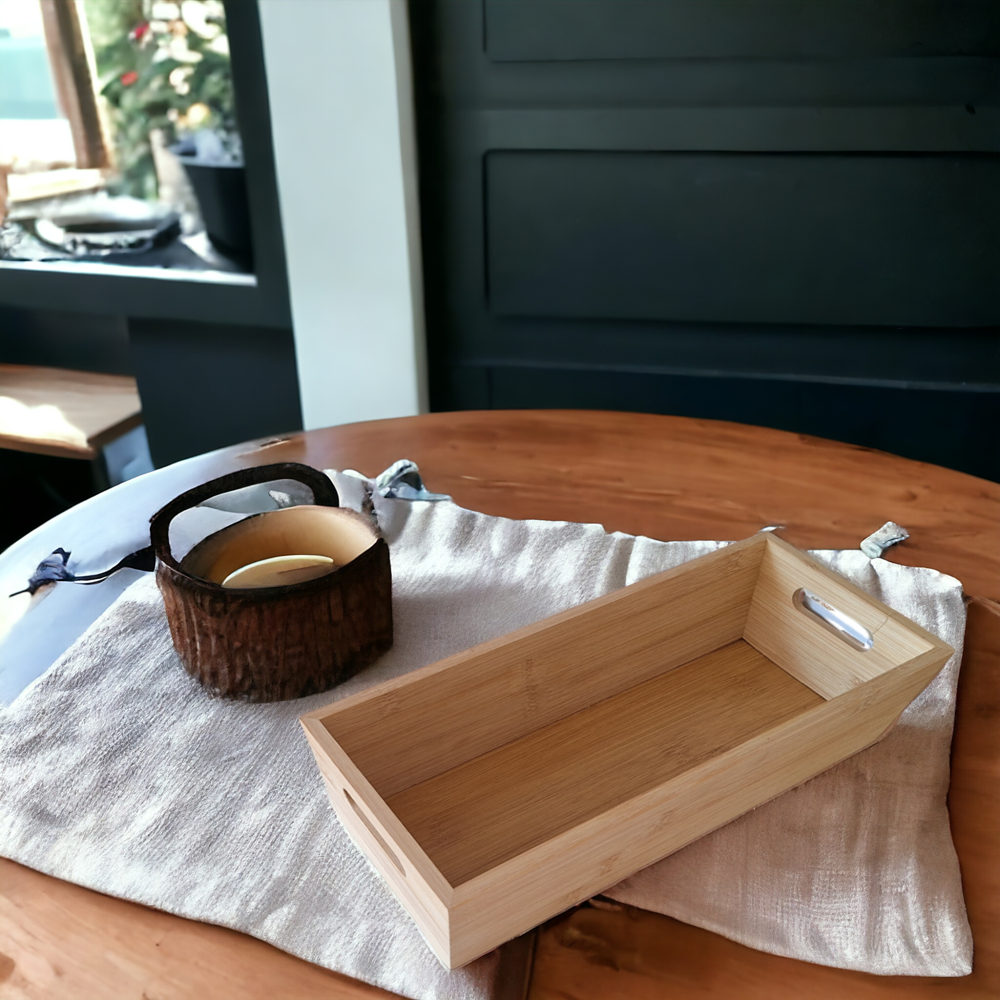 Skrbno je izdelan s pozornostjo do detajlov, razkošno izdelan iz močnega bambusovega lesa in dveh ročajev za udobno prenašanje.
