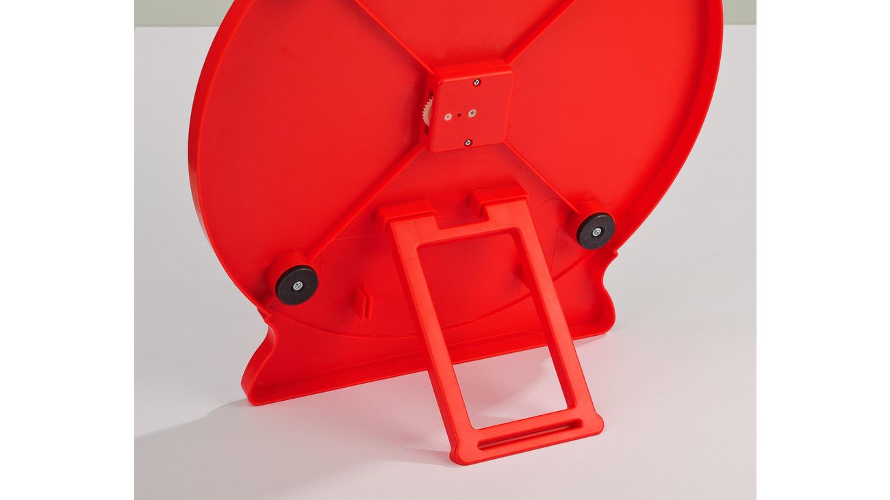 Višina ure je 43 cm in je idealna za postavitev na sredino učilnice. Izdelana je iz trpežne plastike.