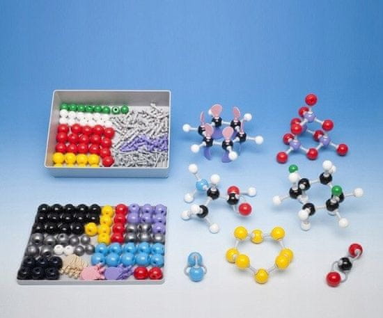 VELIK KOMPLET ZA ORGANSKO IN ANORGANSKO KEMIJO, komplet vsebuje 212 elementov, kar omogoča konstrukcijo zelo širokega nabora struktur. Komplet vključuje modele elementov, kot so ogljik, vodik, dušik, kisik, žveplo, fosfor, halogeni in kovine, ter tri vrste povezovalcev, ki predstavljajo vezi (vključno z enojnimi, kovalentnimi, dvojnimi, trojnimi, koordinacijskimi in ionskimi). Elementi množice se lahko uporabijo za gradnjo molekul (npr. vodika, klora, kisika, ozona, dušika, fosforja, žvepla in ogljika – različnih alotropnih oblik), hidridov (npr. natrija, magnezija, silicija, vodikovega klorida, amonijaka, metana, vode in vodikovega sulfida), kloridov in fluoridov, kovinskih oksidov, nekovinskih oksidov, kislin, kovinskih ionov in organskih spojin (npr. benzena, glicerola, etana, etena, etina, etanola itd.). Strukture so velike in, kar je še pomembneje, prozorne in prozorne.
