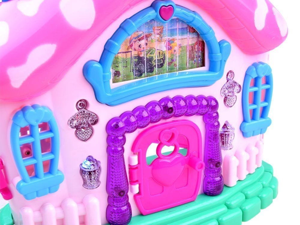 Očarljiva zložljiva hišica za družinsko igro bo vsakemu otroku prinesla veliko veselja. Lepo okrašena z očarljivimi detajli lahko hišica v obliki gobe postane središče odlične igre. V hišici živi družina, ki jo sestavljajo mama, oče in hči. Lastnik pa se odloči, kdo bo v njej živel, in to so lahko trgovine za male živali, igrače Lalaloopsy, poniji … karkoli si želi.
