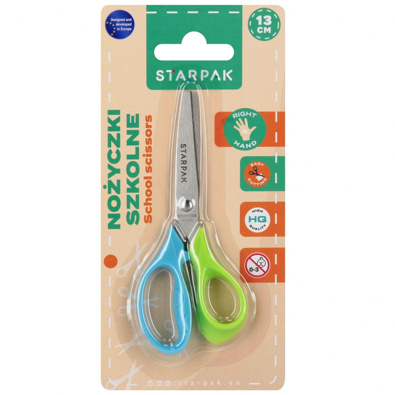 STARPAK Otroške škarje ZA DESNIČARJE, profilirane šolske škarje, VARNO za otroke 13 cm STARPAK