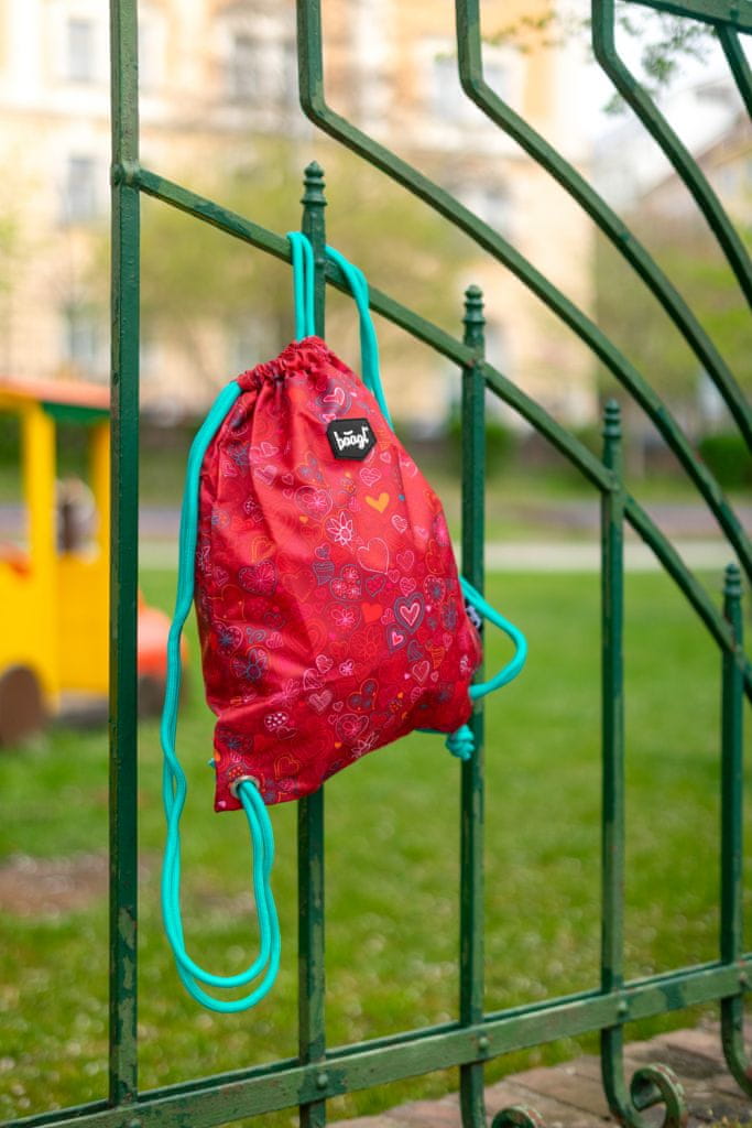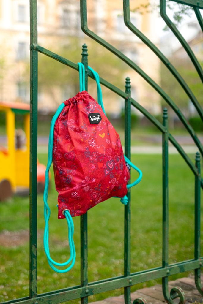 • Vrečka za športne copate ali copate z motivom srca iz močnega pralnega materiala – Zapiranje z vrvico, ki omogoča tudi nošenje na hrbtu