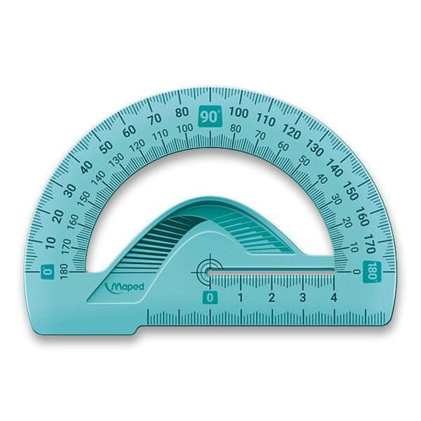Prilagodljiv in nezlomljiv 180° kotomer z 12 cm podlago. Celoten opis