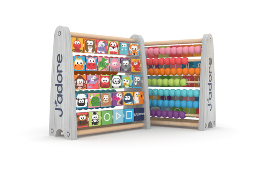 Učite se abecedo in številke z abakusom v veselem dizajnu. J`adore je serija izobraževalnih igrač za najmlajše, izdelanih iz okoljsko trajnostnega lesa brez kemikalij. Izdelek je primeren za otroke od 24. meseca dalje. Ta lesena igrača je odličen pripomoček za razvijanje spominskih sposobnosti, koncentracije in vizualizacije.