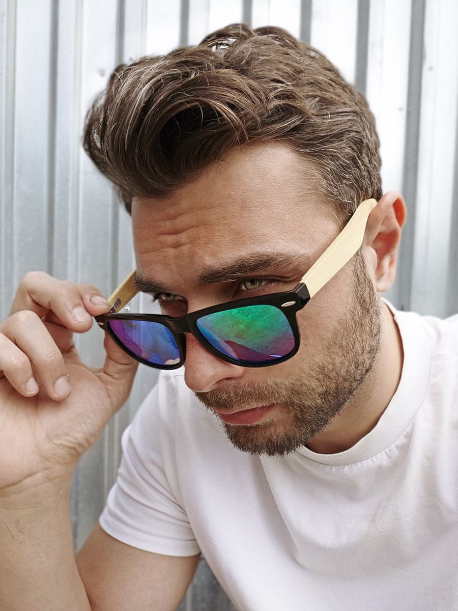 Popis:Moška sončna očala z barvnimi lečami, plastičnimi okvirji in lesenimi nogicami. Kvadratna oblika okvirjev. Unisex slog. Primerno za vse vrste obraza. Kakovostna izdelava po dostopni ceni.Materiál: 50% les, 25% kovina, 25% plastika