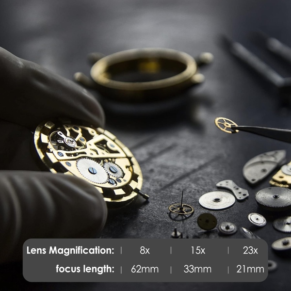Z lečami 8×, 15× in 23× ta povečevalnik omogoča enostavno prilagajanje za različne naloge, zagotavlja jasne in natančne poglede.