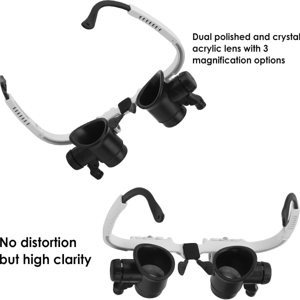 Opremljen z dvema nastavljivima LED lučema, ta povečevalnik zagotavlja optimalno osvetlitev v slabih svetlobnih pogojih za jasnejši pogled.