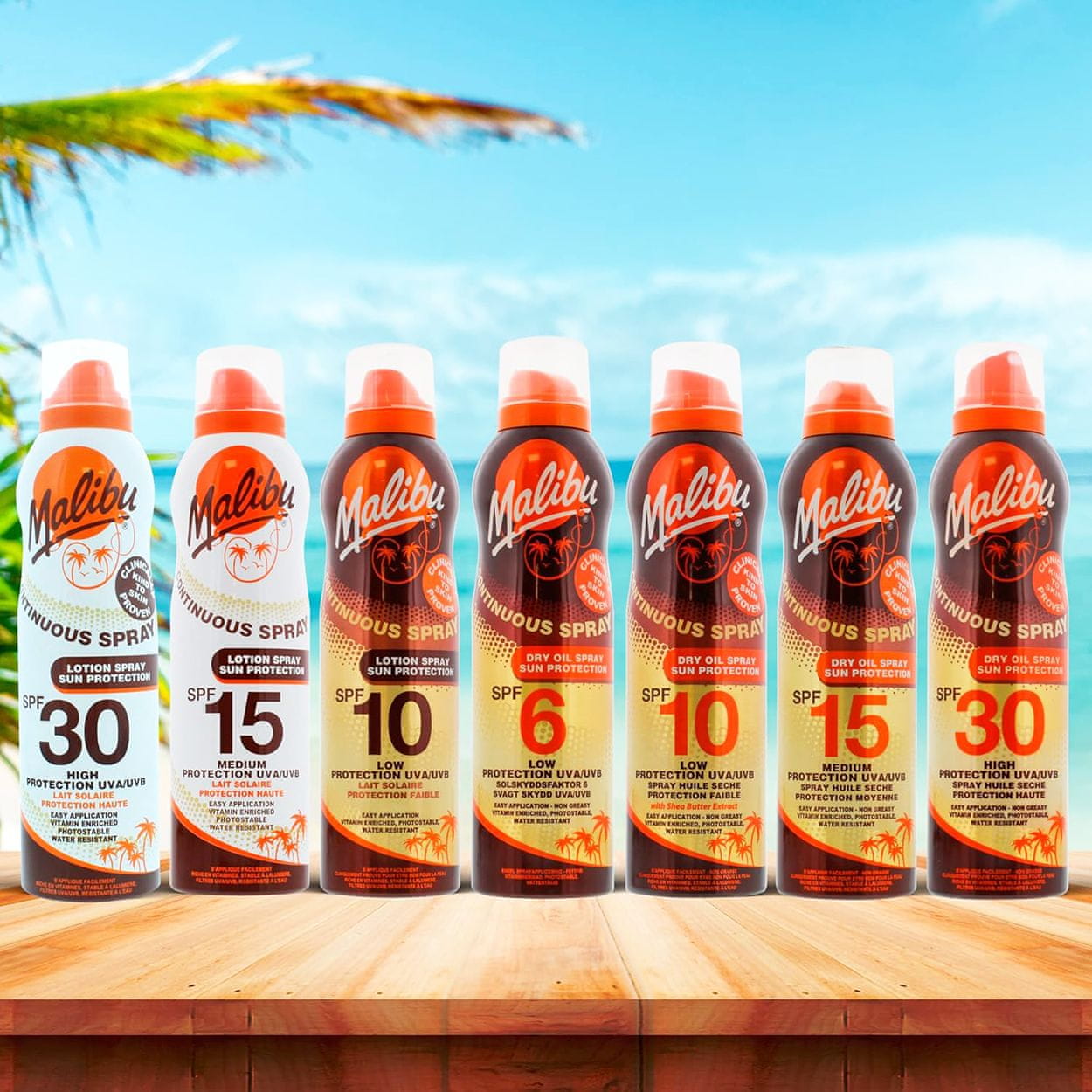 Malibu Dry Oil Aerosol Spray SPF15 – Olje za suho porjavitev v spreju 175 ml Malibu Dry Oil Spray SPF15 je lahko, hitro sušeče olje za porjavitev v razpršilu, ki zagotavlja srednjo UVA in UVB zaščito. Njegova nemastna formula in vitamini odlično nahranijo kožo, jo naredijo mehko in navlaženo. Popoln za poletje – vodoodporen, enostaven za nanašanje in nežen do kože. Srednja zaščita SPF15 – učinkovita zaščita pred UVA in UVB sevanjem. Obogaten z vitamini – kožo hkrati neguje in ščiti. Nemastna in hitro sušeča – lahka formula, ki se ne oprijema oblačil. Vodotesen in fotostabilen – idealen za plažo, bazen in aktivnosti na soncu. Nežen do kože – klinično testiran, primeren tudi za občutljivo kožo. Izključno testirano na ljudeh – brez krutosti. Izdelano v Angliji – garancija kakovosti. Kako uporabiti: Nanesite 30 minut pred in pogosto med izpostavljanjem soncu. Prepričajte se, da je vsa izpostavljena koža enakomerno in izdatno pokrita. Vedno znova nanesite po plavanju ali če menite, da se je izdelek odrgnil zaradi oblačil ali brisače. Samo za zunanjo uporabo. Ne uporabljajte na poškodovani koži. Izogibajte se stiku s tkaninami in očmi. V primeru stika z očmi sperite s čisto vodo. O Malibu Malibu je priznana britanska blagovna znamka, specializirana za zaščito pred soncem, ki ji že leta zaupajo družine po vsem svetu. Njegovi izdelki združujejo visoko učinkovitost, cenovno dostopnost in varne formule, primerne tudi za najbolj občutljivo kožo – vključno z otroki in alergiki. Blagovna znamka ponuja široko paleto balzamov, olj, razpršil in šmink z zaščitnim faktorjem od 10 do 50+ ter tretmaje po sončenju, ki pomagajo pomiriti kožo in podaljšati porjavelost. Vsa kozmetika Malibu je dermatološko testirana, številna je veganom prijazna, nekatera pa je tudi vodoodporna, zaradi česar je idealna tako za plažo kot za aktivnosti na prostem. Malibu je blagovna znamka, ki skrbi za varnost vaše kože – od prvega sončnega žarka do sončnega zahoda.