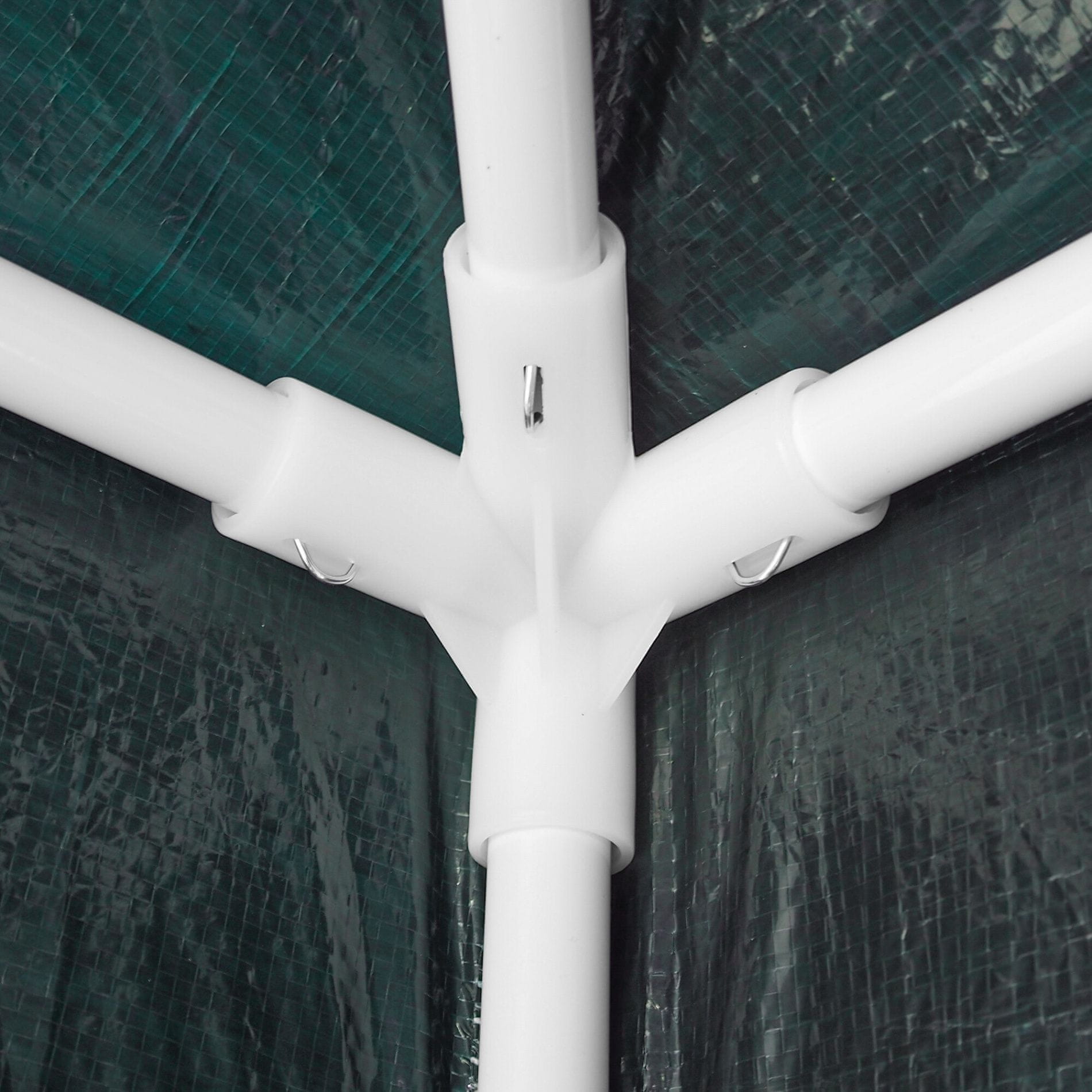 Jeklene cevi so dodatno obdelane proti koroziji, zato vam ni treba skrbeti za njihovo poškodbo zaradi vlage ali dežja.Pokrov paviljona je izdelan iz trdnega polietilena z gramature 100g/m2, ki je odporen proti trganju in UV sevanju.