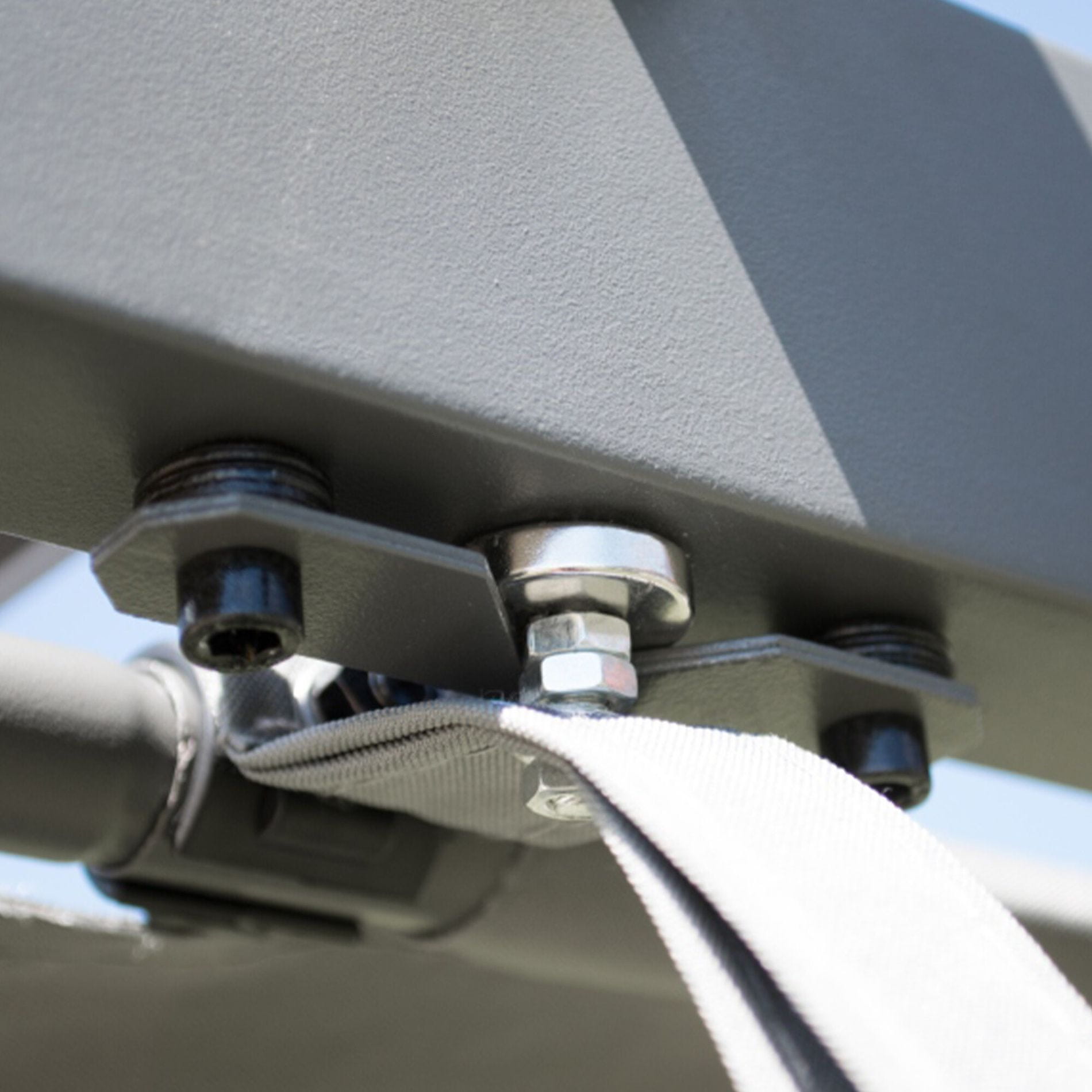 Vrtni paviljon mora biti pritrjen na tla, kar zagotavlja njihovo stabilnost in varnost med močnejšim vetrom. Pritrditev je preprosta in zagotavlja, da bo paviljon trdno ostal na svojem mestu.