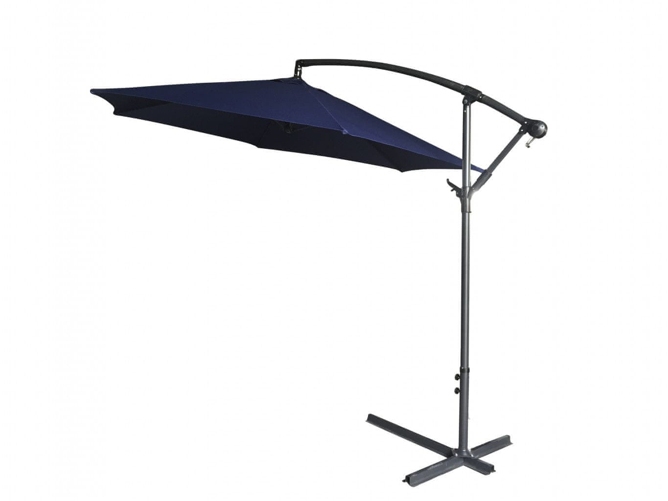 Gugalnisenčnik s premerom 3 m – 6 jeklenih reber (10×18 mm) – premer noge 48 mm – prašno lakiran v sivi barvi – odpiranje na ročaju – prevleka senčnika iz 180 g poliestra z vodoodbojno zaščito – prezračevanje – brez dodatkov – s stojalom za ploščice – priporočena obremenitev stojala 50 kg (dobavljeno brez ploščic). Kakovost in vzdržljivost.