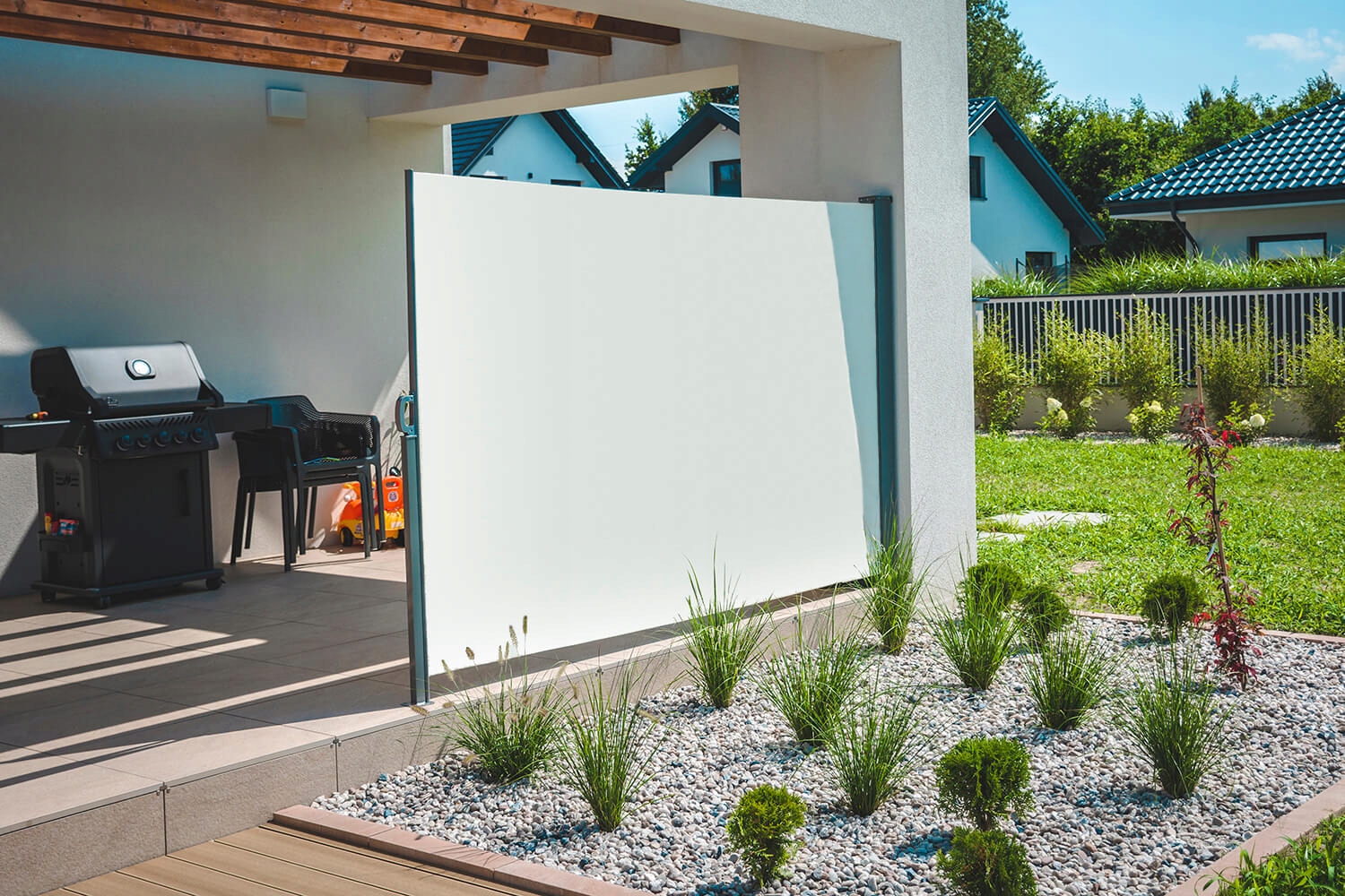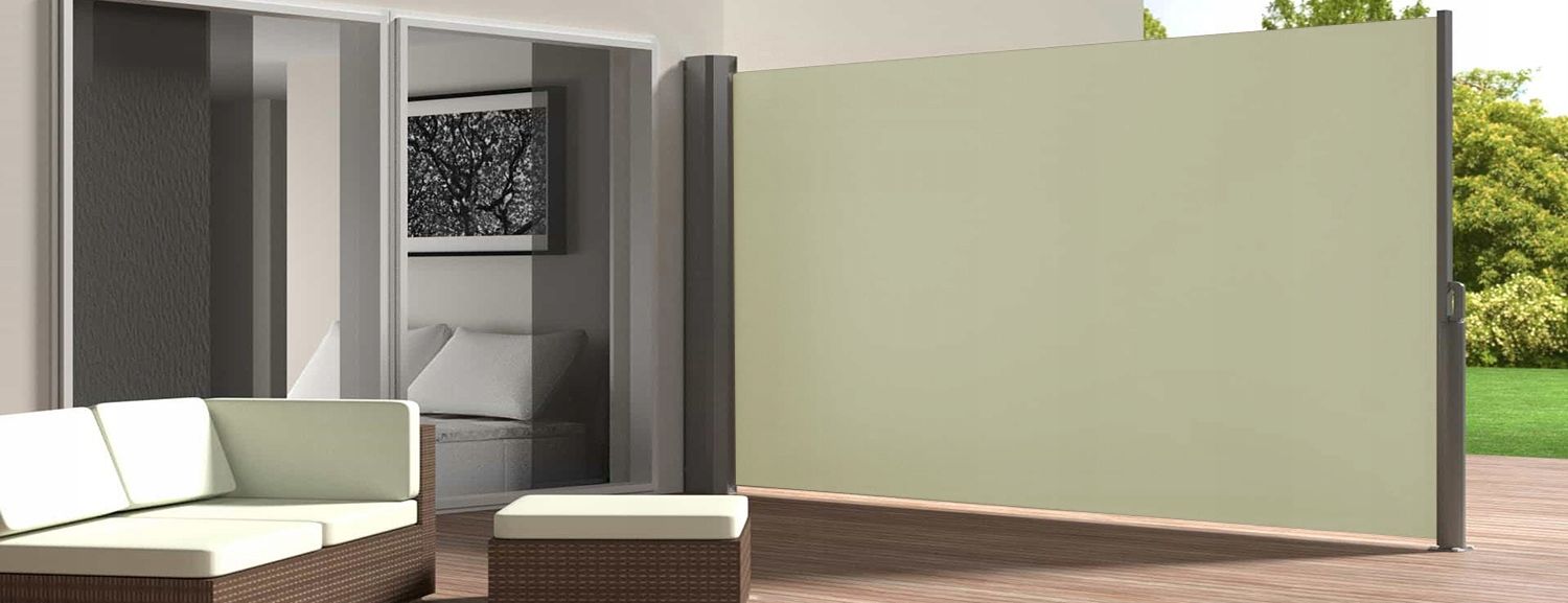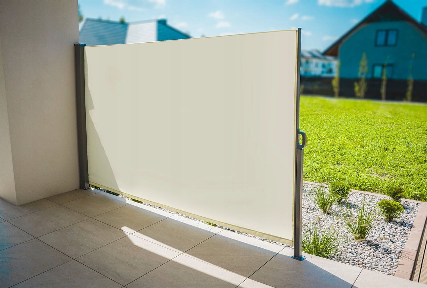 Prilagodite dolžino tende z nosilcem. Ne glede na to, ali morate pokriti majhno površino ali veliko teraso, je tenda prava za vas. Nosilec preprosto prilagodite želeni razdalji – največja dolžina je 300 cm.