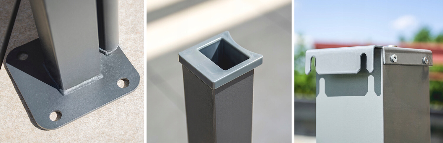 Postopek namestitve je hiter in enostaven, zahvaljujoč priloženim navodilom in vsem potrebnim pritrdilnim elementom. Najprej pritrdite kaseto na steno vaše hiše, nato pa nosilec na tla – na ustrezni razdalji.