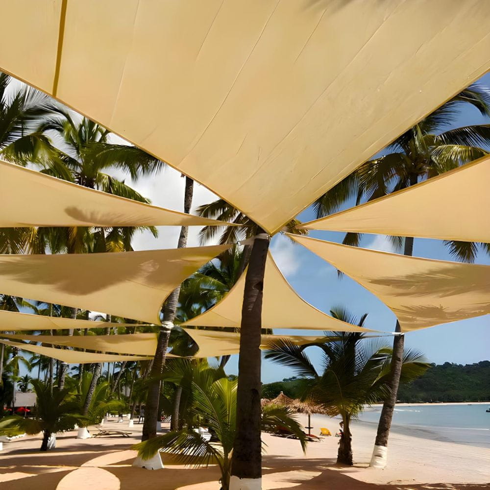 Odkrijte skrivnost naših senčnih jader, ki jih odlikuje edinstvena konkavna oblika. Ta enakomerno porazdeli pritisk po zunanjih vogalih, kar zagotavlja, da je tkanina popolnoma gladka, brez neželenih gub in povešenosti. Vsaka podrobnost šteje in naša jadra govorijo sama zase!