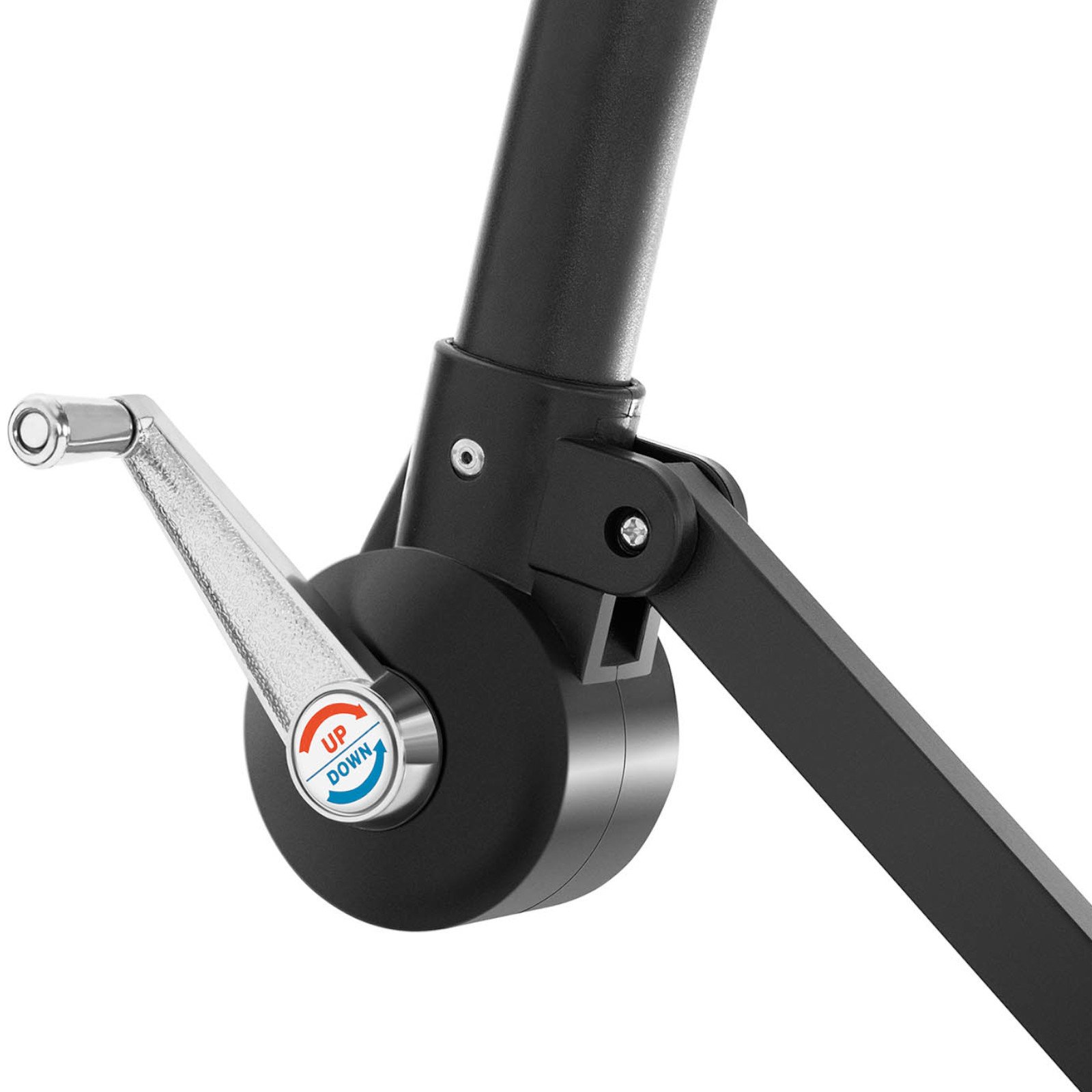 je primeren za vsak vrt, teraso ali parcelo in povsod, kjer je potrebna senca v sončnih dneh. Ima veliko kupolo s premerom 300 cm. Zaščitni faktor UPF 50+ zadržuje približno 98 % vseh UV-žarkov. Senčnik je izdelan iz trpežnega poliestra z gostoto 180 g/m2, ima visoko odpornost proti raztezanju in trganju, je trajen, odporen proti UV-žarkom in enostaven za vzdrževanje. Ročica omogoča hitro in enostavno odpiranje in zapiranje sončnika ter njegovo nagibanje. Material in konstrukcija se odlikujeta z dolgo življenjsko dobo. Steber s premerom 48 mm in 8 reber je izdelan iz trpežne jekla. Sistem za zaščito pred vetrom zagotavlja stabilnost in boljšo cirkulacijo zraka tudi v neugodnih vremenskih razmerah. Zahvaljujoč nosilcu sončnik prihrani prostor, ga lahko postavite ob steno ali poleg miz. Jeklena podlaga ima odprtine, s katerimi lahko sončnik s pomočjo vijakov pritrdite na katerokoli mesto. Za še večjo stabilnost lahko dokupite posebno podlago, ki bo dodatno držala celoto na mestu.