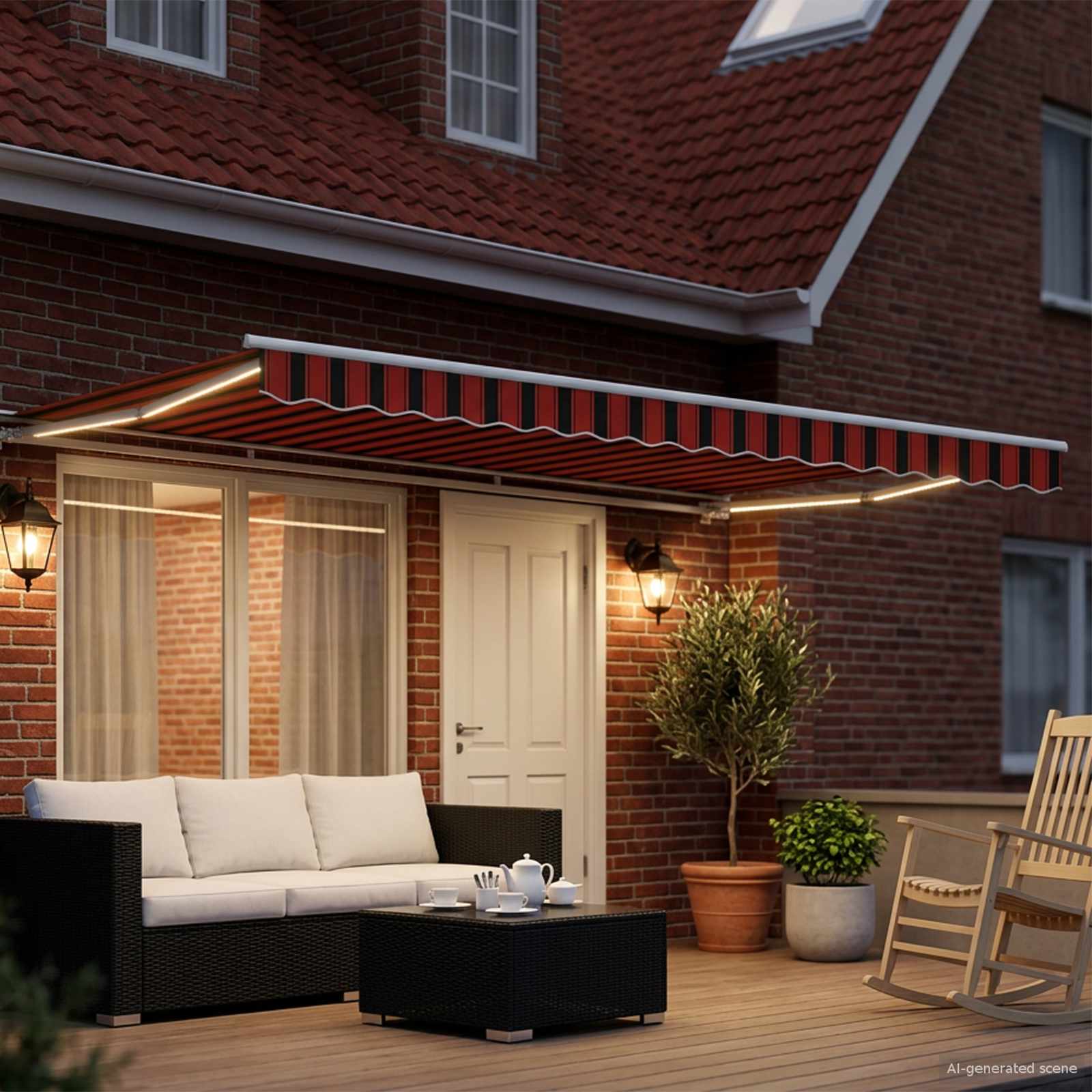Ta moderna električna zložljiva tenda bo vašemu zunanjemu prostoru dodala pravi čar, saj nudi prilagodljivo senco. Njen eleganten, pravokoten dizajn se odlično poda moderne vrtnarske postavitve, kjer se spoji stil in funkcionalnost, primerna za vsak vrt ali teraso. Mislite na mirno okolje, kjer lahko uživate, zaščiteni pred močno sončno svetlobo. Tenda se lepo prilega steni in ponuja privlačen senčni prostor, ne da bi zavzela preveč prostora na tleh.