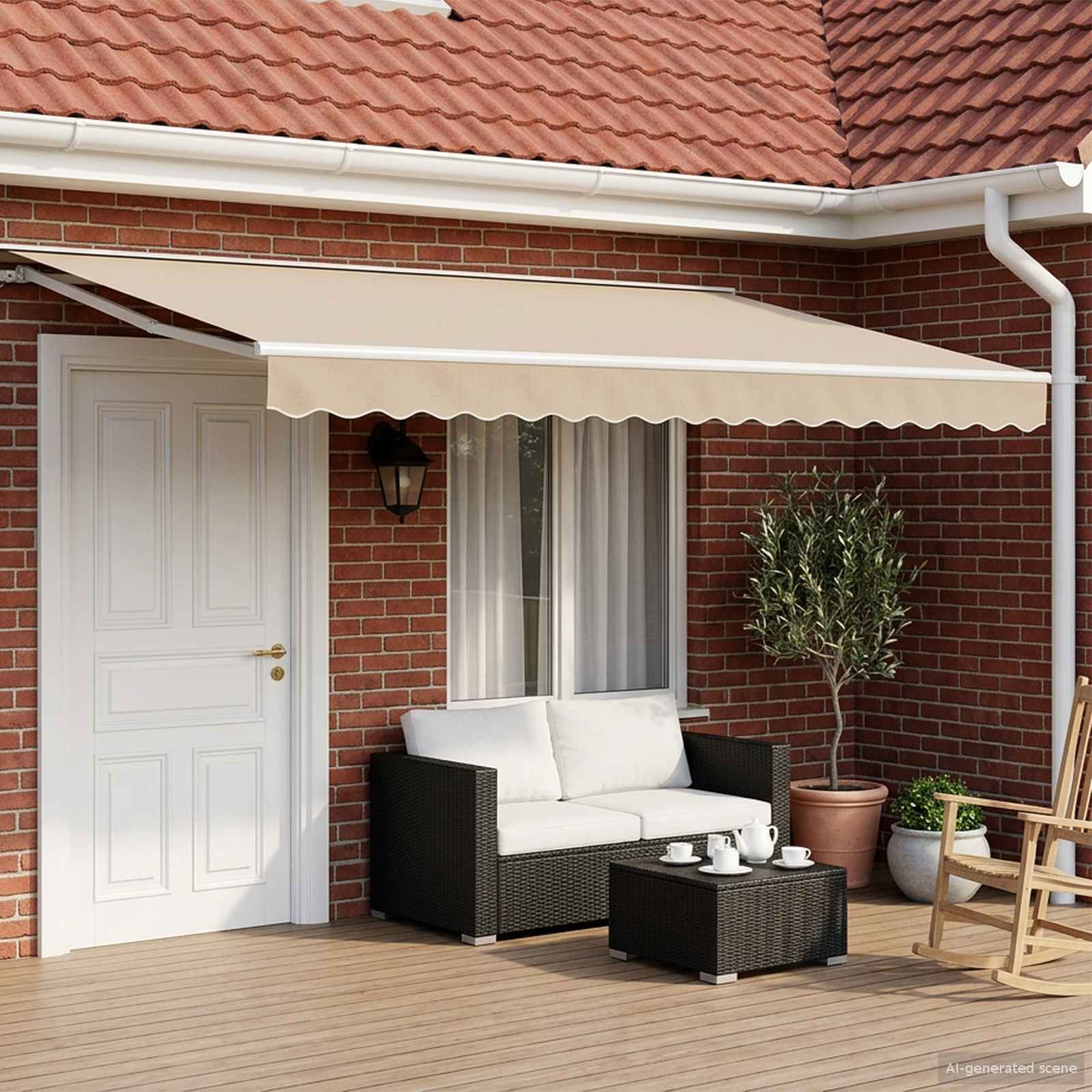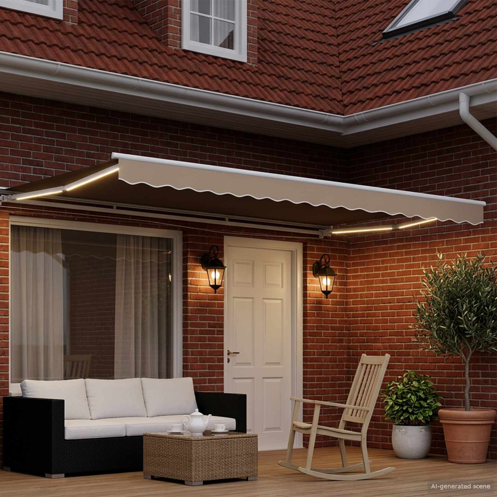Ta moderna električna zložljiva tenda bo vašemu zunanjemu prostoru dodala pravi čar, saj nudi prilagodljivo senco. Njen eleganten, pravokoten dizajn se odlično poda moderne vrtnarske postavitve, kjer se spoji stil in funkcionalnost, primerna za vsak vrt ali teraso. Mislite na mirno okolje, kjer lahko uživate, zaščiteni pred močno sončno svetlobo. Tenda se lepo prilega steni in ponuja privlačen senčni prostor, ne da bi zavzela preveč prostora na tleh.