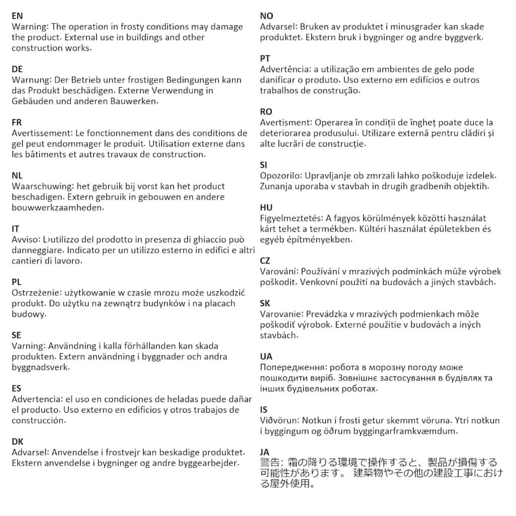 Pozor: nevarnost poškodb! Pri popravilu, spreminjanju, razstavljanju in odstranjevanju senčilnega sistema je treba dele, ki so pod napetostjo (npr. zložljive roke, protinapetostni sistemi), popolnoma sprostiti ali predhodno zavarovati. Za to je treba naročiti strokovnjaka! Tende ne uporabljajte, če je poškodovana in potrebuje popravilo ali nastavitev. Stransko tendo je treba umakniti, če hitrost vetra presega 28 km/h. V primeru slabih vremenskih razmer, kot sta močan dež in sneg, je treba stransko markizo umakniti. Uporaba v zmrzali lahko poškoduje izdelek. Pozor: nevarnost požara! V bližini tende ne uporabljajte žarov, grelnikov, opreme za kuhanje ali sveč. Med namestitvijo bodite previdni, saj lahko obstaja nevarnost zmečkanin in strganin. Med namestitvijo bodite previdni s prsti. Da preprečite nevarnost zadušitve, hranite to plastično vrečo stran od dojenčkov in otrok. Te vreče ne uporabljajte v zibelkah, posteljah, vozičkih ali stajicah. Ta vreča ni igrača. Nevarnost! Nevarnost zadušitve, majhne dele hranite izven dosega otrok!Opozorilo: Upravljanje ob zmrzali lahko poškoduje izdelek. Zunanja uporaba v stavbah in drugih gradbenih objektih.