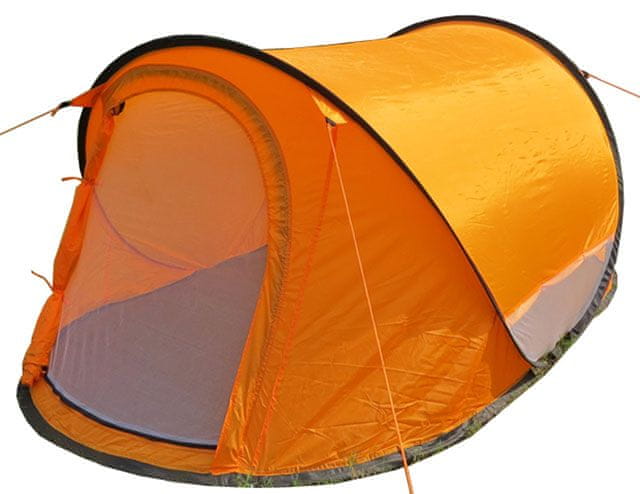 STAND ALONE za 3 osebe – enostenski predor s sprednjim vhodom, opremljen z mrežo proti komarjem. Razmeroma udobne dimenzije šotora za udobno uporabo za 3 osebe z veliko notranjega prostora – dimenzije šotora so 250 x180 x115 cm. Samostojno postavljiv šotor ima ojačane in zalepljene šive, ki preprečujejo vdor vode, vodotesnost je 1500 mm vodnega stolpca, teža šotora je 3,5 kg. Zložen šotor zavzame minimalno prostora. Šotor preprosto vzemite iz embalaže, ga postavite na tla in zaradi prožnih podpornih palic iz steklenih vlaken se bo sam postavil. Šotoru so priložena navodila za zlaganje in razlaganje šotora. Dimenzije za prevoz 90 × 90 × 3 cm.