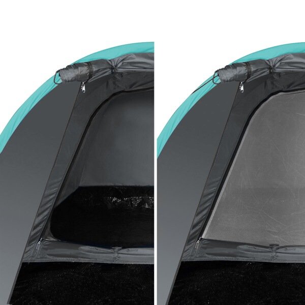 Vstop v šotor je mogoč skozi predprostor, ki ima sprednji vhod. Vhod se odpira z dvema ločenima zadrgama. Vhod v spalnico je opremljen s ponjavo in mrežo proti komarjem. Pod dodatnim nadstreškom je odprtina, opremljena z mrežo proti komarjem za stalno kroženje zraka, na sredini pa je zanka, na katero lahko obesite na primer svetilko. Ob straneh spalnice sta 2 žepa za shranjevanje telefona, denarnice itd. hodnik brez tal lahko uporabite za shranjevanje na primer nahrbtnikov ali taborniškega štedilnika.