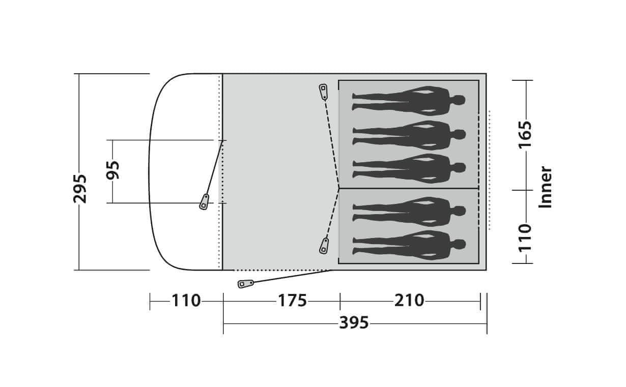 • Šotor ima sprednjo mokro cono in velik bivalni prostor, kjer lahko zravnano stojite.