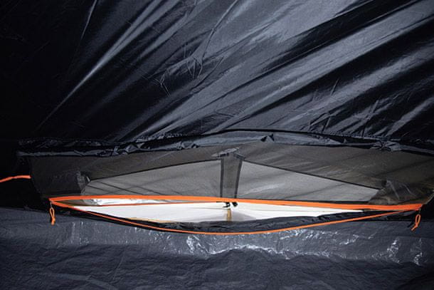 Svež zrak v spalnici nam omogoča domiseln sistemo Vario-Vent-Control, katerega lahko upravljate od znotraj. Veliko mrežno okno omogoča dovolj svežega zraka in v primeru slabega vremena ga enostavno zapremo z notranjo loputo. Preprosto spustite zaveso v žep brez nadležnega zvijanja. Kljub zaprti loputi, 2 dodatna zračnika zagotavljata kroženje zraka.