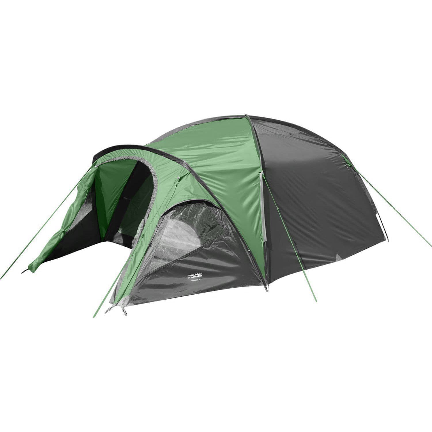 Prostoren šotor za kampiranje za 3 osebe s priročno sprednjo verando zanesljivega proizvajalca High Colorado, ki se ukvarja z izdelki za prosti čas. Konstrukcija šotora temelji na aluminiju in kovinskih palicah debeline 9,5 mm. Telo šotora je izdelano iz trpežnega poliestra z vgrajeno UV-zaščito. Tla so izdelana iz udobnega polietilena, ki se učinkovito upira vlagi. Šotor je tako primeren tudi v občutljivih deštivnihý razmerah ter vas ohranja suhe in tople. Notranja velikost šotora je 210×210×130 cm , kar zadostuje za do 3 osebe. Celotnaý zasnova šotora je v kombinaciji zeleno-šedé barveí (Fotografija je ilustrativnaí. Odtenki in razporeditev barv se lahko razlikujejo).
