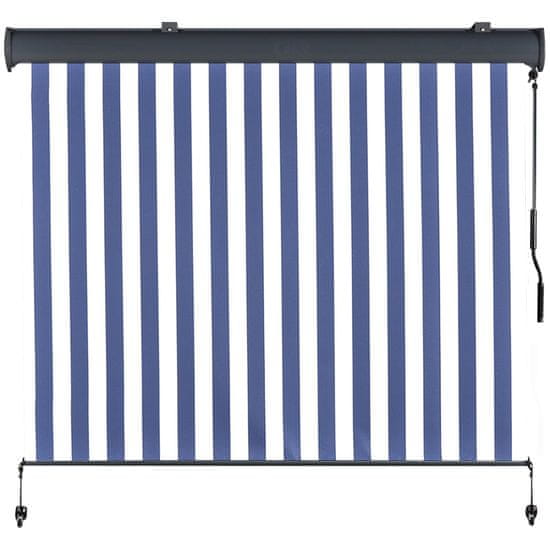 OUTSUNNY Outsunny Zunanje rolete, vodoodporne, upravljanje z ročico, sivo-bele in modre, 250 x 200 cm