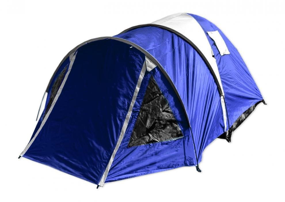 Družinski dvojni šotor za 4 osebe z dimenzijami: 80+80+240×210×145 cm predprostor in odstranljiva podloga predprostora.