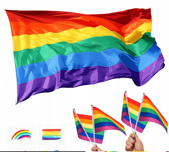 Naš komplet dvojnih zastav ne vključuje le velike mavrične zastave, temveč tudi ročno zloženo manjšo zastavo velikosti 14 × 21 cm in štiri nalepke za tetovaže z mavričnim motivom LGBT. Ta zastava simbolizira raznolikost gejevske skupnosti, njenih šest barv pa predstavlja enakost in enotnost. To je odličen način, da pokažete spoštovanje, razumevanje in podporo kampanji za enake pravice gejev.