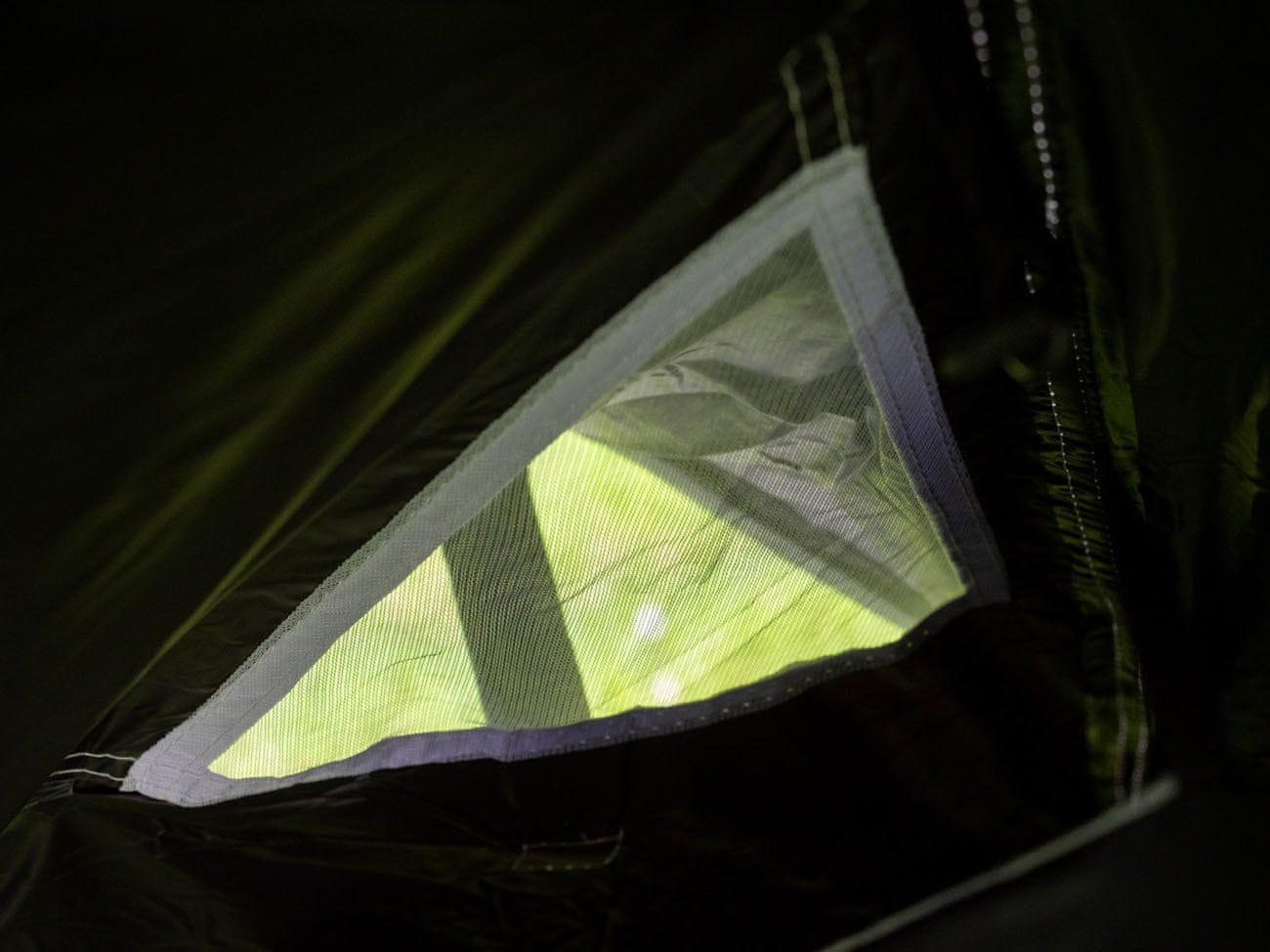 Šotor je sestavljen iz zložljivih palic iz steklenih vlaken s premerom 9,5 mm. Nekatere palice so krajše in imajo premer 8,5 mm. Dve kovinski palici se uporabljata kot opora za nadstrešek nad vhodom, ki služi tudi kot streha proti soncu. Ščiti vas pred sončnimi žarki. Poleg tega je zunanja lupina z lepljenimi šivi zelo vodoodporna, zato vas slabo vreme ne bo presenetilo.