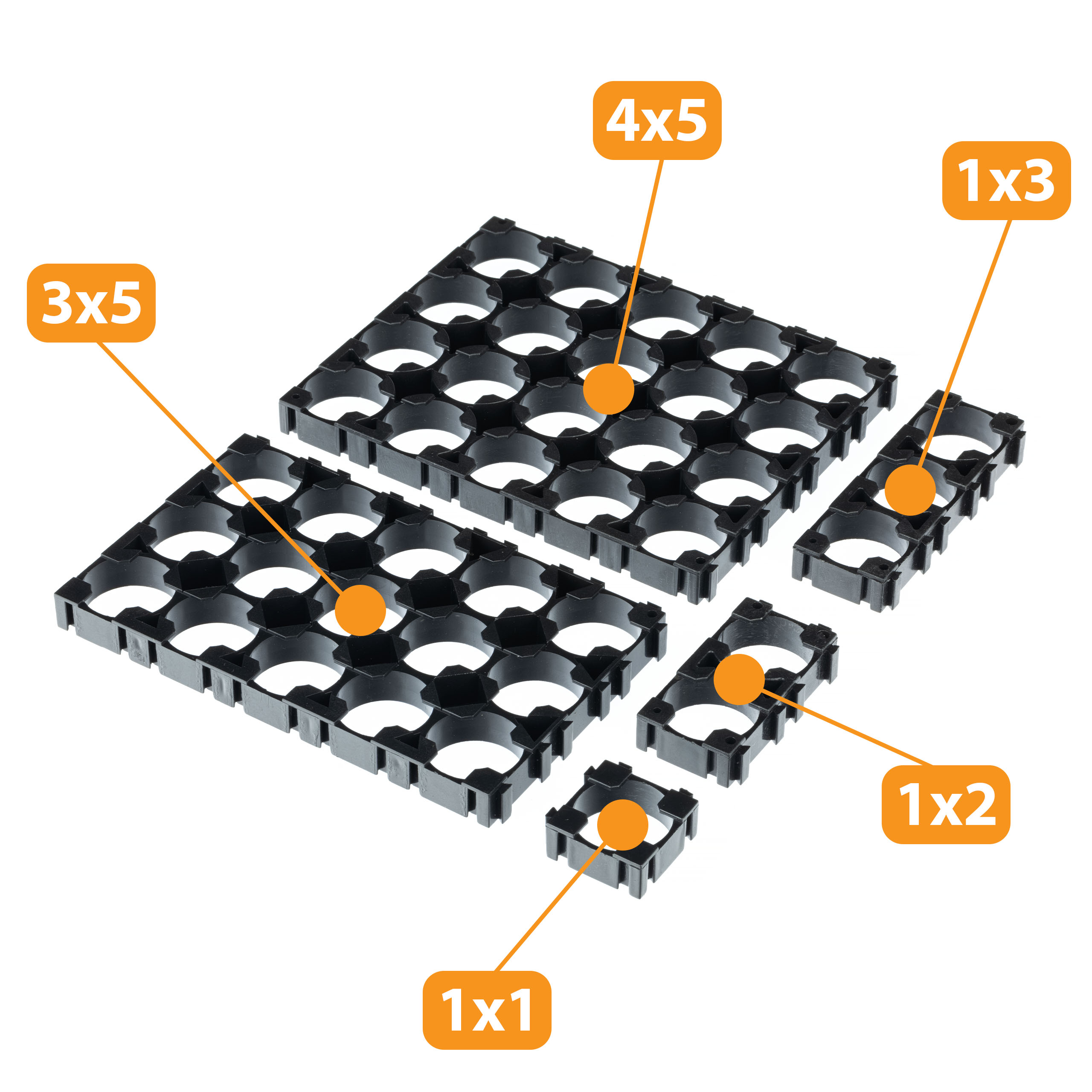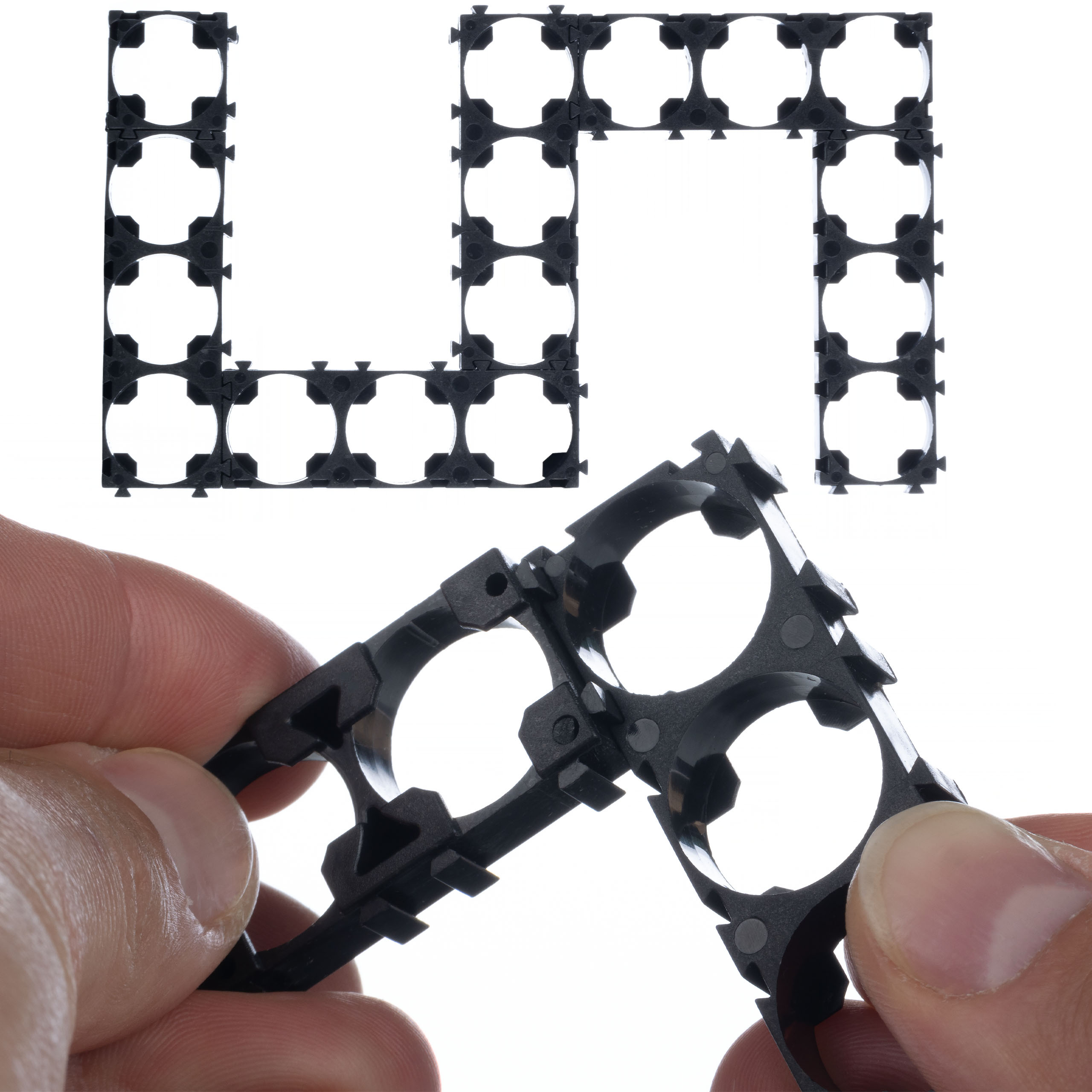 En kos vključuje en element ohišja. Za povezavo 2 kosov baterij potrebujemo 2 kosa ohišja – zgornjega in spodnjega, kar omogoča preprost in učinkovit postopek pakiranja baterij.