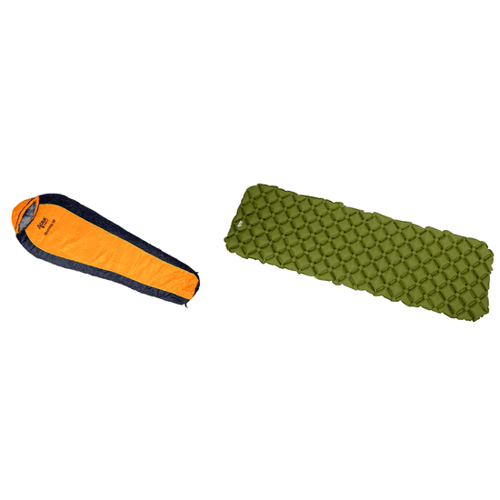 Paket vsebuje spalno vrečo Acra Mummy 10 in napihljivo podlogo L140ZEL – zelena.