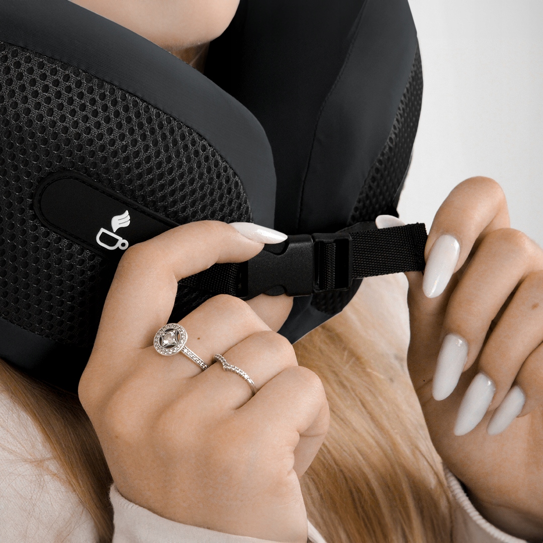 Trdno zapiranje s sponko, ki se uporablja v tej blazini, omogoča natančno prilagoditev kateri koli velikosti. Zapiranje je izjemno varno in stabilno, zagotavlja, da se blazina popolnoma prilega vratu in zagotavlja maksimalno udobje. Zračna prevleka!