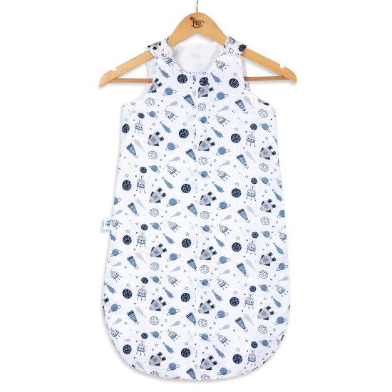 Prijetno in udobno. Naš udoben lahka spalna vreča je izdelana iz 100 % zračnega dvoslojnega bombažnega muslina z ohlapnim tkanjem, ki zagotavlja pravo temperaturo in preprečuje pregrevanje med spanjem. Prijetno in nežno ovije otroka in zagotavlja miren nočni spanec.. Tkanina muslin ima antialergijske in protiglivične lastnosti.